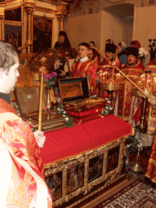 Торжественный молебен в 20.00 завершит пребывание святынь в столице Поморья, которые отправятся в Вологодскую епархию.