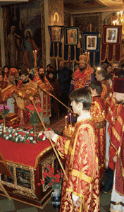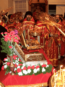 Под пение величания преподобномученицам великой княгине Елизавете и инокине Варваре епископ Тихон принял из рук епископа Бостонского Михаила ковчеги со святыми мощами.