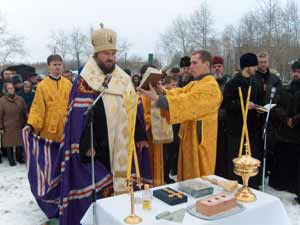 Епископ Тихон освятил непоколебимое основание нового храма во имя святителя Тихона, патриарха Всероссийского