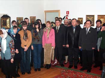 Настоятель храма протоиерей Евгений Соколов сказал о том, что за этот год удалось сделать не так много, как хотелось бы. Домовая церковка уже имеет свой клирос, состоящий из студенток разных вузов, студентов-алтарников, постоянную паству. Службы – акафисты, всенощные и литургии проводятся регулярно. Обустроен алтарь, заполнен иконостас.