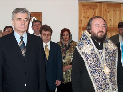 Первый день после выборов новый губернатор начал с благодарственного молебна, который совершил епископ Тихон