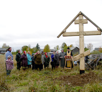 В ходе работ по консервации кровли главного холмогорского храма - Спасо-Преображенского собора - в дни празднования Воздвижения Животворящего Креста Господня на церкви установлен крест, сообщил настоятель холмогорского прихода иеромонах Леонтий (Эйзенман). А еще ранее, накануне Воздвижения, новый обетный крест был установлен в местечке Залыва около с. Ломоносово на месте обветшавшего поклонного креста. Прежний крест был поставлен в тридцатые годы XX века священником, имя которого пока что не удалось установить. Все работы по установке крестов выполнили холмогорские прихожане.