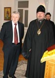 В конце насыщенного рабочего дня Председатель Совета Федерации РФ встретился с епископом Архангельским и Холмогорским Тихоном. Вместе с московским гостем на встречу прибыли и кандидаты в депутаты Областного Собрания от Архангельского регионального отделения партии "Справедливая Россия". Встреча происходила в здании детской епархиальной воскресной школы в домовом храме во имя святого страстотерпца царевича Алексия.