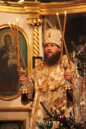 Совершая рождественское великое повечерие и утреню, по прочтении отрывка из Евангелия от Матфея епископ Архангельский и Холмогорский Даниил обратился к пастве с проповедью.