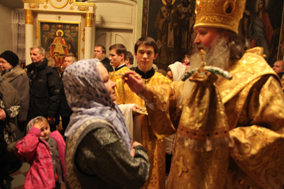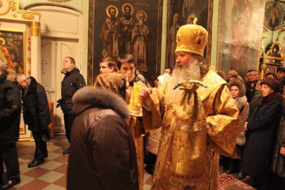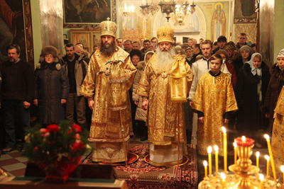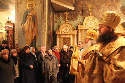 5 февраля с визитом в Архангельск прибыл Преосвященнейший Тихон, епископ Южно-сахалинский и Курильский. Его Преосвященство сопровождал епископ Архангельский и Холмогорский Даниил.Вечером в Свято-Ильинском кафедральном соборе г. Архангельска архипастыри возглавили совершение всенощного бдения недели 37-й по Пятидесятнице и памяти блаженной Ксении Петербургской. Духовенство кафедрального собора сослужило святителям за праздничным богослужением.