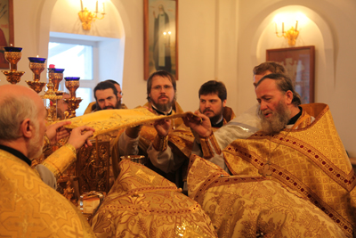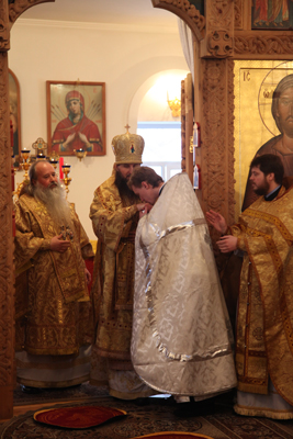 За Божественной литургией была совершено Таинство Хиротонии – во священника рукоположен диакон Андрей Мезенцев. По благословению Правящего архиерея, рукоположение совершил Преосвященнейший епископ Южно-Сахалинский и Курильский Тихон. Для владыки Тихона это было первой хиротонией, совершенной им после рукоположения во епископский сан.