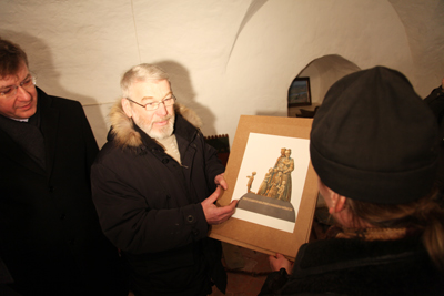 Члены делегации поклонились святыням храма Двенадцати Апостолов, осмотрели историческую экспозицию и поднялись на колокольню Спасо-Преображенского собора. Затем состоялось освящение закладного камня, установленного фондом «Император» по благословению Преосвященного Епископа Архангельского и Холмогорского Даниила на месте обнаружения холмогорских останков, где в будущем предполагается воздвигнуть монумент в память о пребывании в ссылке в Холмогорах Императора Иоанна VI Антоновича и членов его Августейшей Семьи («Брауншвейгской Фамилии»). Предварительный эскиз этого памятника для церковно-общественного обсуждения представил заслуженный художник России С.Н. Сюхин.