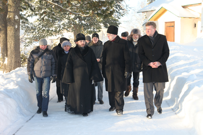 После чаепития в Архиерейских Палатах, стены которых помнят труды Архиепископа Холмогорского и Важского Афанасия и других чтимых иерархов Русской Православной Церкви, посещения Императора Петра I Великого, а также скорби Брауншвейгской Фамилии, члены делегации выехали в Свято-Троицкий Антониево-Сийский монастырь – место ссылки будущего Святейшего Патриарха Филарета (Романова), отца Царя Михаила I Феодоровича, в лице которого в 1613 году была всенародно призвана на царство Династия Романовых.