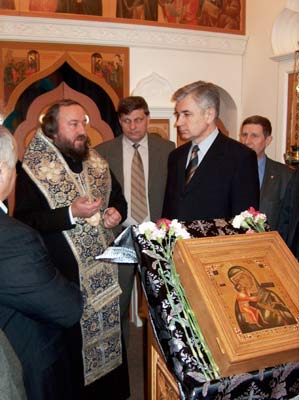 Сегодня, в первый день после выборов главы администрации Архангельской области, епископ Архангельский и Холмогорский Тихон совершил благодарственный молебен в домовом храме во имя «Феодоровской» иконы Божией Матери архиерейской резиденции. На молебне присутствовал новоизбранный губернатор Архангельской области Николай Киселев. В приветственном слове новому главе администрации Его Преосвященство пожелал помощи Божией в несении нелегкого креста служения северянам. Как отметил Владыка Тихон, дни голосования первого и второго туров губернаторских выборов пришлись на празднование всероссийски почитаемых образов Божией Матери «Державная» и «Феодоровская». В явлении этих икон Пресвятая Богородица указала свой особый покров и заступничество над Россией. Это глубоко символично и для Архангельской области. Мы усматриваем в этом надежду и верим, что Господь благословит труды новоизбранного губернатора, - сказал Владыка.