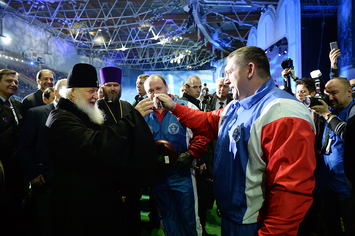 Предстоятель Русской Церкви с сожалением отметил, что православные верующие своим безразличием поддерживают ложный образ христианина как человека физически слабого, безвольного. «Якобы православный человек не может постоять за себя, не может защитить родных, семью, друзей. Это совершенная неправда, направленная на подрыв авторитета христианского мировоззрения, на вытеснение Церкви из мира спорта. Мы не можем отдавать пространство спорта на откуп людям, враждебным христианству», — сообщил Святейший.
