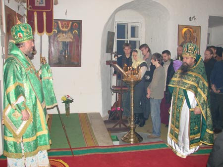 Я поздравляю братию этой обители. Прежде всего, это их общий праздник. Благодарю архимандрита Трифона за его труды и желаю ему здравия и многих сил, потому что, кроме настоятельства в этой обители, он еще руководит отделом образования нашей епархии… Желаю всей братии сил, помощи Божией и не ослабевать духом, что самое главное в наше время.