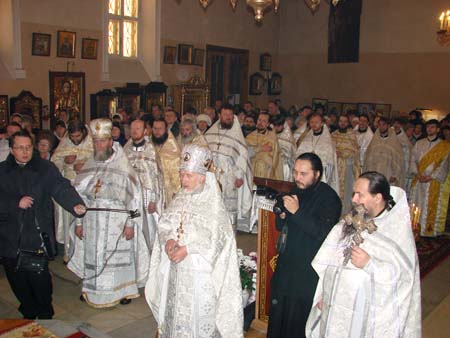 - Наша Церковь отмечает величайшее событие – праздник Рождества Христова. Сегодня вся тварь радуется и приносит благодарение Богу. И мы с вами уподобляемся тем восточным волхвам, которые принесли Младенцу Христу свои дары – золото, ладан и смирну. Но мы приносим не вещественные, а духовные дары: нашу веру, нашу надежду, нашу любовь и преданность Богу. Разрешите, Преосвященнейший Владыка, поздравить вас с великим праздником Рождества Христова – от всего духовенства, как нашего города, так и всей епархии…
