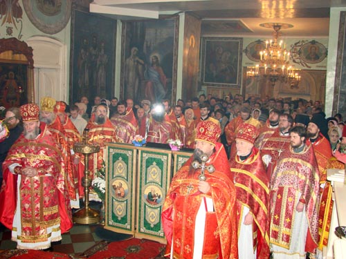- Сегодня поистине необычный день для всей Вселенской Православной Церкви. В этот день вспоминается огромный сонм наших людей по крови, наших сродников. Это особый день. Сегодня русская Церковь, пребывающая частью на Небесах, возносит свои молитвы о всех, кто живет на земле, кто является членами Церкви, кто является родственниками тех, кто пострадал за веру, за Церковь Христову, за Отечество в начале 20-го столетия. И мы сегодня собрались сюда, в очередной раз, уже который год, чтобы воздать благодарение Богу за то, что Он молитвами наших сродников в Церкви небесной сподобил воскреснуть Церкви земной, восстать, можно сказать, из небытия. Ведь только в последнее время мы все вместе являемся свидетелями и соучастниками чуда воскрешения нашей Церкви. Конечно, это не без молитвенного соучастия наших соотечественников – тех, кого мы поминаем сегодня. И это, прежде всего, возглавляющий сонм новомучеников Святейший Патриарх Московский и Всея Руси Святитель Тихон, благодаря которому было восстановлено патриаршеское служение на Руси. Это и безвинно убиенные Царственные страстотерпцы, и многие священники, монашествующие, миряне, мужи и жены, - все, кто сейчас уже предстоит на Небе пред Престолом Божиим, молясь за своих соотечественников. Благодаря их молитвам мы имеем возможность развивать Церковь, возрождать души людей – то, к чему призван каждый христианин. Христианин обязан свидетельствовать всему внешнему миру о своей вере и своих традициях. Благодарю всех, кто принял участие в праздничном богослужении – духовенство епархии, наших певчих, тружеников нашего собора и всех, кто пришел помолиться в этот особый для нас всех день. Я думаю, что наши сродники, новомученики и исповедники Российские, находящиеся на Небе, видят наше усердие и молитву, и вновь и вновь будут вспоминать о нас, о своих земляках, и помогут возродить нашу Архангельскую землю.