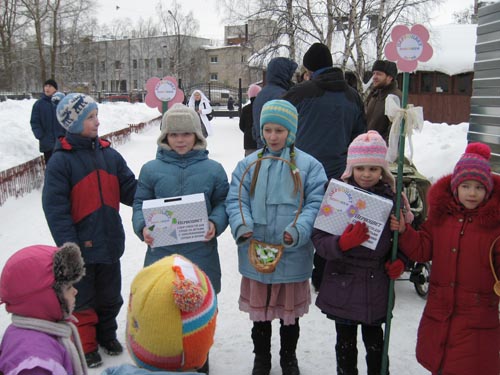 Еще до революции этот приход в Великий пост организовывал «цветочный сбор» средств для больных детей. Вот и сейчас всем, кто вносит пожертвования в кружки с эмблемой акции, дети дарят сделанные своими руками цветы-первоцветы (подснежники, примулы, мать-и-мачеху).