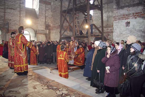 1 мая, в день памяти святых основателей города Северодвинска – Евфимия, Антония и Феликса Корельских, епископ Архангельский и Холмогорский Тихон совершил первую Божественную литургию в главном пределе Свято-Никольского собора Николо-Корельского монастыря. Свято-Никольский собор и относящийся к нему комплекс зданий бывшего Николо-Корельского монастыря находится на территории ОАО «ПО «Севмаш» - крупнейшего в России судостроительного комплекса.