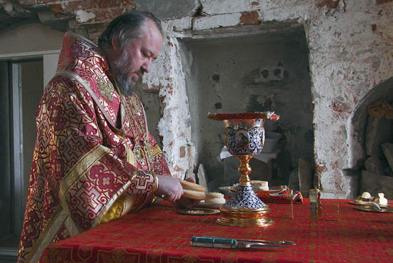 После Литургии состоялся крестный ход вокруг зданий монастыря. По возвращении в храм епископ Тихон совершил освящение иконы святых покровителей города Северодвинска – Евфимия, Антония и Феликса Корельских.