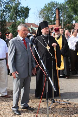 А.Е. Кожин: Я рад поприветствовать всех, кому небезразлично не только прошлое нашего города, не только настоящее, но его будущее. Ведь мы собрались здесь строить не просто здание, мы пришли сюда, чтобы принять участие в строительстве духовного центра не только Архангельска, но и всей Архангельской области. Мне по роду своей работы приходится очень много встречаться с жителями нашего города, и многие из них говорят, что проблемы, которые имеет наш город, отчасти вызваны тем, что у нас нет такого духовного центра – главного храма города и главного храма области. Поэтому от городского совета позвольте поблагодарить всех, кто сегодня пришел сюда, всех, кто примет участие в этой акции. Доброго вам всем здоровья и храни вас Господь.