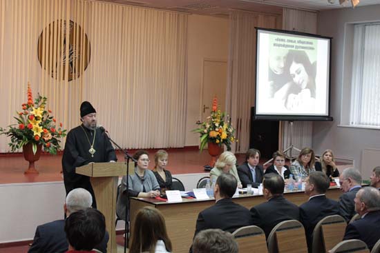 От Архангельской и Холмогорской епархии выступали руководитель епархиального отдела образования архимандрит Трифон (Плотников), настоятель студенческого храма протоиерей Евгений Соколов, руководитель духовно-просветительского центра имени свв. Мефодия и Кирилла (г. Северодвинск) протоиерей Александр Удин и другие. Докладчики рассказывали об образовательной деятельности в Архангельской и Холмогорской епархии, об опыте создания в светской школе классов с этнокультурным православным компонентом, о благотворительной деятельности как средстве воспитания, о приемных семьях. Затрагивались проблемы социального сиротства, здоровья населения, алкоголизации несовершеннолетних, вопросы наркологической помощи.